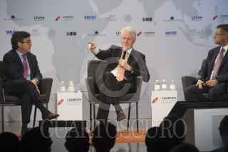 MÉXICO, D.F., 06FEBRERO2015.- Bill Clinton, ex presidente de EUA, Luis ALberto Moreno, presidente del Banco Interamericano de Desarrollo y Douglas Becker, director general de Laureate Education, Inc en el marco de la Cumbre de Laureate Juventud y Productividad en México, donde se abordaron temas como la educación y la productividad en el país. FOTO: ISABEL MATEOS /CUAROSCURO.COM