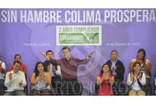 TECOMÁN, COLIMA, 06FEBRERO.- En el marco del Mes de la Cruzada Nacional contra el Hambre, el Presidente Enrique Peña Nieto aseguró hoy que si bien los ingresos del Gobierno se han visto disminuidos, especialmente por la caída en los precios del petróleo, se habrá de privilegiar que se mantengan los beneficios y apoyos de la política social a quienes más lo necesitan. FOTO: PRESIDENCIA /CUARTOSCURO.COM
