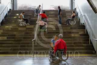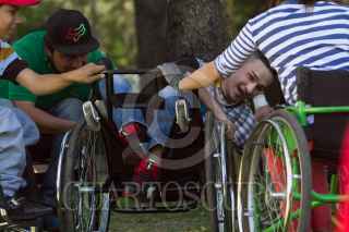MÉXICO, D.F., 07FEBRERO2015.- Decenas de personas con capacidades diferentes, quienes presentan algún tipo de discapacidad motora, utilizan la silla de ruedas para desplazarse por la ciudad. Desafortunadamente, no todos tienen la posibilidad económica para adquirir una, por lo que algunos realizan el Curso de Capacitación para la Vida Independiente, para recibir una silla de ruedas en donación una vez que concluyan la capacitación. Al término, los instructores evalúan el desempeño y el nivel de independencia alcanzado. Si lo aprueban, reciben una silla todo terreno, fabricada a la medida de cada beneficiario. Los instructores Luis y Antonio realizan todas sus actividades como cualquier otra persona, una vida cotidiana acompañada de sus familias. FOTO: GUILLERMO PEREA /CUARTOSCURO.COM