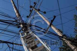MEXICO, D.F., 07FEBRERO2015.- Una enorme red de cables atados a postes de todas las banquetas proven de electricidad y telecomunicaciones a la mayor parte de la Ciudad de México. FOTO: DAVID POLO /CUARTOSCURO.COM