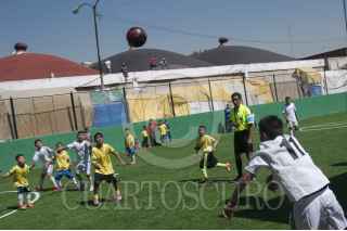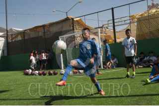 MÉXICO, D.F., 07FEBRERO2015.- Como una forma de involucrar a los niños en el deporte y alejarlos de los malos vicios, fue reinaugurada la cancha de fútbol infantil con pasto sintético en el deportivo Fray Bartolomé de las Casas, popularmente conocido como el Maracaná, ubicado en el corazón del barrio de Tepito. FOTO: DIEGO SIMÓN SÁNCHEZ /CUARTOSCURO.COM