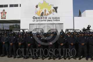 SANTA MARÍA COYOTEPEC, OAXACA, 09FEBRERO2015.- Policías Estatales que desde hace una semana iniciaron un paro de labores, afirmaron que no ha habido respuesta por parte del gobierno del estado que encabeza Gabino Cué Monteagudo, por lo que el paro continúa con la presencia de más de 2 mil elementos en el cuartel de la policía. Además, desmintieron que su sueldo mensual sea superior a los 8 mil pesos como lo aseguró el gobierno mediante un comunicado. FOTO: ARTURO PÉREZ ALFONSO /CUARTOSCURO.COM