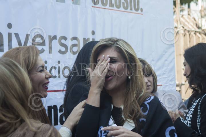 MÉXICO, D.F. 10FEBRERO2015.- La precandidata a la gubernatura de Sonora Claudia Pavlovich se divierte con sus compañeras ex senadoras al finalizar la ceremonia del 65 aniversario del natalicio de Luis Donaldo Colosio, en la explanada del CEN del PRI. FOTO: MOISÉS PABLO /CUARTOSCURO.COM