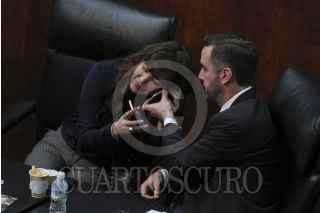 MÉXICO, D.F., 10FEBRERO2015.- Mónica Arreola, senadora por el Partido Nueva Alianza y Jorge Luis Lavalle senador por el Partido Acción Nacional, durante la sesión en el Senado de la República. FOTO: ADOLFO VLADIMIR /CUARTOSCURO.COM