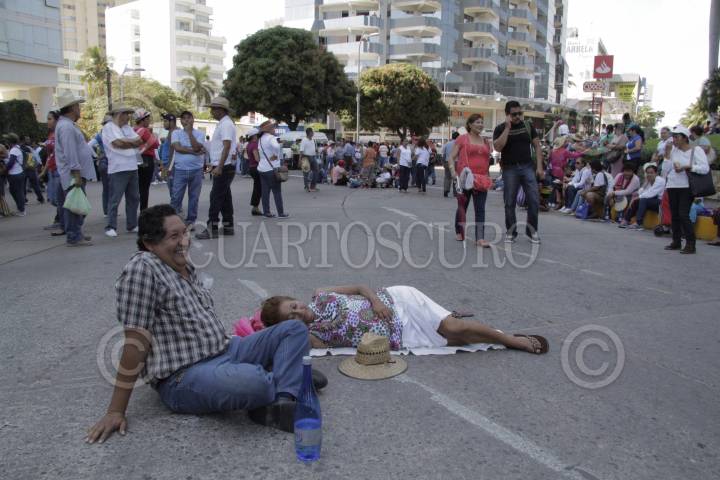 ACAPULCO, GUERRERO, 10FEBRERO2015.- Trabajadores de la educación pertenecientes a la Coordinadora estatal de trabajadores de la educación en Guerrero marcharon sobre la costera Miguel Alemán en demanda del pago de sus salarios y la presentación con vida de los 43 normalistas de Ayotzinapa. Los mentores bloquearon los accesos del aeropuerto y retiraron propaganda electoral. FOTO: BERNANDINO HERNÁNDEZ /CUARTOSCURO.COM