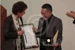 MÉXICO, D.F., 10FEBRERO2015.- El compositor Federico Ibarra Groth recibió la medalla de Bellas Artes 2014 por su aportación creativa y sobresaliente trayectoria artística con la que ha contribuido a enriquecer el acervo musical de México en la Sala Manuel M. Ponce del palacio de Bellas Artes. María Cristina García Cepeda, directora de Bellas Artes le entregó el reconocimiento. FOTO: IVÁN STEPHENS /CUARTOSCURO.COM