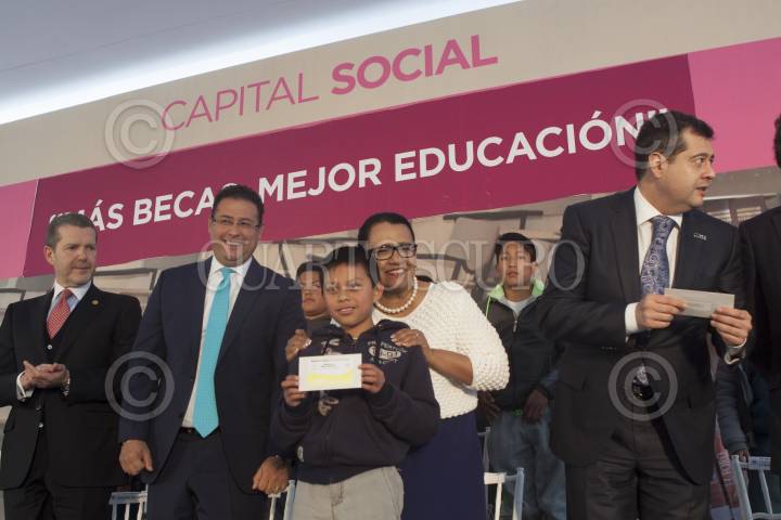 MÉXICO, D.F., 11FEBRERO2015.- Un niño toma una foto con su teléfono inteligente en la ceremonia en la cual se entregaron tarjetas del programa "Más Becas, Mejor Educación", en el Bosque de Chapultepec. FOTO: MOISÉS PABLO /CUARTOSCURO.COM