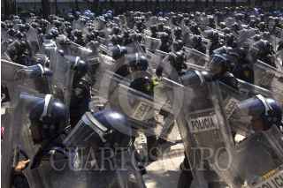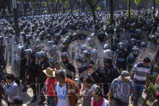 MÉXICO, D.F., 11FEBRERO2015.- Maestros de la Coordinadora Nacional de Trabajadores de la Educación marcharon de la Estela de Luz hacia la Secretaria de Gobernación. FOTO: ENRIQUE ORDÓÑEZ /CUARTOSCURO.COM