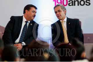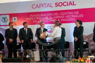 MÉXICO, D.F., 12FEBRERO2015.- Miguel Ángel Mancera, jefe de gobierno capitalino, Hiram Almeida, titular de la SSP DF, e Isidro Corro, titular de la Delegación Gustavo A. Madero, encabezaron la inauguración del programa de Alarmas Vecinales y el centro de Monitoreo de la delegación Gustavo A. Madero, ubicado junto a la casa de huéspedes "La Villa", frente a la explanada delegacional. FOTO: DIEGO SIMÓN SÁNCHEZ /CUARTOSCURO.COM