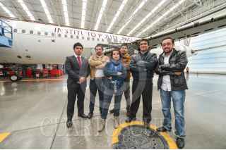 TOLUCA, EDOMEX, 12FEBRERO2015.- El Instituto Politécnico Nacional (IPN) recibió en donación un planeador Airbus 320 por parte de la aerolínea Interjet, al evento asistieron Francisco Plata, secretario de Extensión e Integración Social del IPN, José Luis Garza, director general de Interjet y Humberto Soto Rodríguez, presidente del Consejo Directivo de la Fundación Politécnico. FOTO: CUARTOSCURO.COM