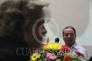 CUERNAVACA, MORELOS, 12FEBRERO2015.- El escritor mexicano José Agustín, perteneciente a la llamada "literatura de la onda" fue homenajeado esta noche en el Cine Morelos, donde también se realizó la presentación del libro "Manos llenas de sol" de José Antonio Aspe. FOTO: PATRICIA MORALES / CUARTOSCURO.COM