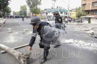 MÉXICO, D.F., 13FEBRERO2015.- Dos personas detenidas fue el saldo del enfrentamiento entre granaderos y vecinos del Eje 5 Sur despues de autoridades de la SSP-DF y personal de la Delegación Iztapalapa realizaron un operativo de recuperación de vialidades en la colonia Nueva Rosita. FOTO: SAÚL LÓPEZ /CUARTOSCURO.COM