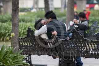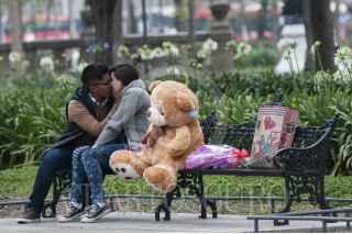 MÉXICO, D.F., 13FEBRERO2015.- La Alameda Central es un espacio donde varias parejas buscan privacidad para poder convivir. El día de mañana se celebra el día del amor y amistad por lo que los novios acostumbran regalarse algún peluche, flores, chocolates o cualquier detalle que demuestre su amor. FOTO: DIEGO SIMÓN SÁNCHEZ /CUARTOSCURO.COM