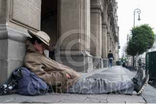 MÉXICO, D.F., 13FEBRERO2015.- Un hombre se toma un descanso frente al Palacio del Ayuntamiento del Gobierno del Distrito Federal, quien para su comodidad se tapa la cara con su sombrero para no ser observado por los transeúntes. FOTO: DIEGO SIMÓN SÁNCHEZ /CUARTOSCURO.COM