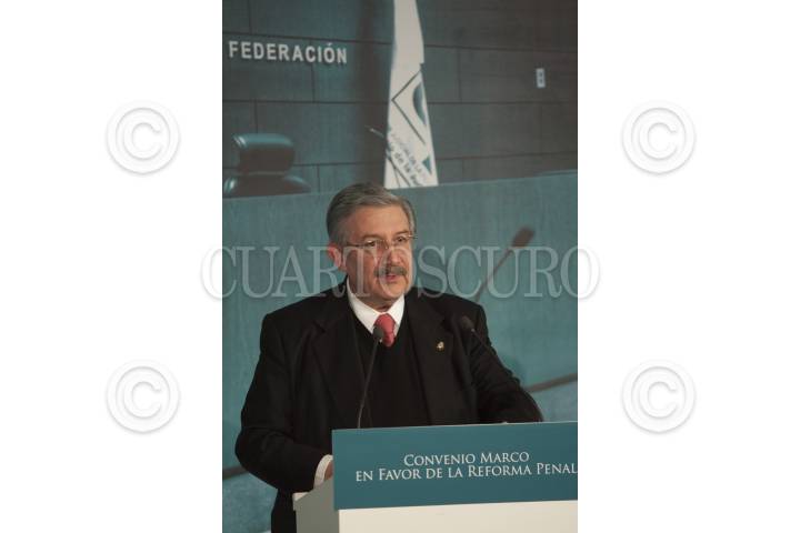 MÉXICO, D.F., 13FEBRERO2015.- José Ramón Amieva Gálvez, consejero Jurídico y de Servicios Legales del GDF y el Jefe de Gobierno Miguel Ángel Mancera, durante la firma de convenio marco en favor de la Reforma Penal en la Suprema Corte de Justicia de la Nación. Con la cual las autoridades capitalinas asignaron a título gratuito y por tiempo indefinido inmuebles que se localizan en los reclusorios sur, norte y oriente, a fin de que en ellos se instalen los juzgados especializados en procesos penales federales y las salas de oralidad. FOTO: MOISÉS PABLO /CUARTOSCURO.COM