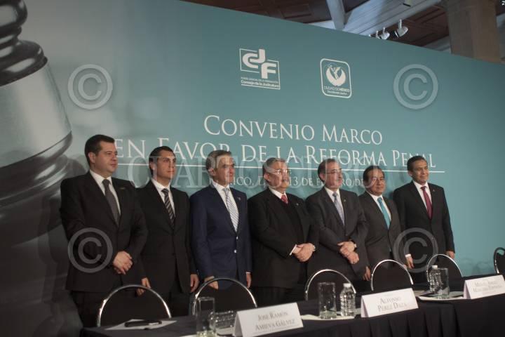 MÉXICO, D.F., 13FEBRERO2015.- José Ramón Amieva Gálvez, consejero Jurídico y de Servicios Legales del GDF y el Jefe de Gobierno Miguel Ángel Mancera, durante la firma de convenio marco en favor de la Reforma Penal en la Suprema Corte de Justicia de la Nación. Con la cual las autoridades capitalinas asignaron a título gratuito y por tiempo indefinido inmuebles que se localizan en los reclusorios sur, norte y oriente, a fin de que en ellos se instalen los juzgados especializados en procesos penales federales y las salas de oralidad. FOTO: MOISÉS PABLO /CUARTOSCURO.COM