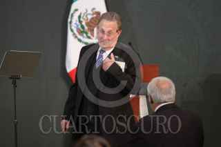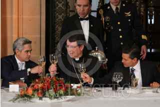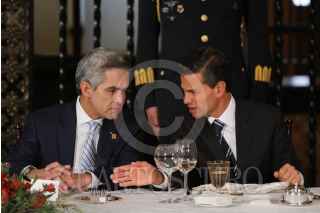 MÉXICO, D.F., 13FEBRERO2015.- Miguel ÁNgel Mancera, jefe de gobierno capitalino, Christophen Pierre, nuncio apostólico en México y decano del cuerpo diplomático y Enrique Peña Nieto, presidente de México, durante la reunión con el cuerpo diplomático acreditado en México, en el marco del Tratado de Tlatelolco FOTO: ADOLFO VLADIMIR /CUARTOSCURO.COM