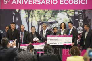 MÉXICO, D.F., 16FEBRERO2015.- Ecocbici cumple sus primeros 5 años de servicio en la ciudad de México, y se ha convertido en el cuarto sistema de bicicletas mas grande del mundo, cuenta con mas de 150 mil usuarios, cada semana este servicio cuenta con un millón de viajes. Este sistema extenderá sus servicio a la delegación Benito Juárez y contara con 171 ciclo estaciones. Con motivo de su aniversario el gobierno del Distrito Federal premio a los usuarios mas frecuentes de este servicio de bicicletas. FOTO: ISABEL MATEOS /CUARTOSCURO.COM