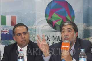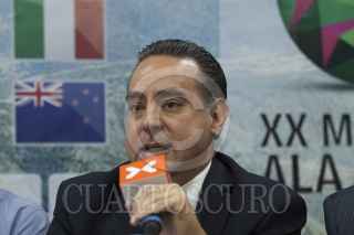 MÉXICO, D.F., 17FEBRERO2015.- Oscar García Ramos, director de Turismo del Estado de México y José Peña Buenrostro, presidente de la Federación Mexicana de Aeronáutica, durante la conferencia de prensa en la cual se dieron los detalles del XX Mundial Ala Delta 2015. Valle de Bravo recibirá a cientos de atletas de diversos países que participarán en una de las competencias más ambiciosas del mundo en parapente. El XX Mundial Ala Delta se llevará a cabo del 28 de febrero al 13 de marzo de 2015 FOTO: MOISÉS PABLO /CUARTOSCURO.COM