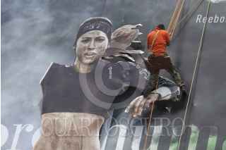 MÉXICO, D.F., 17FEBRERO2015.- Trabajadores terminan de colocar un espectacular deportivo sobre el Circuito Interior. FOTO: MOISÉS PABLO /CUARTOSCURO.COM