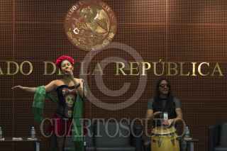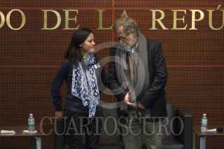 MÉXICO, D.F., 17FEBRERO2015.- Tania Castillo, cineasta, y Henner Hoffmann, director del Centro de Capacitación Cinematográfica (CCC), presentaron el cortometraje documental "La Parka", nominada a los premios Óscar, que tuvo lugar en el Senado de la República. FOTO: IVÁN STEPHENS /CUARTOSCURO.COM