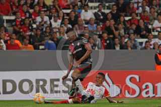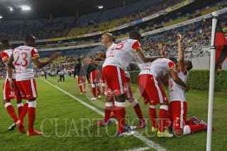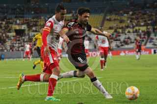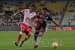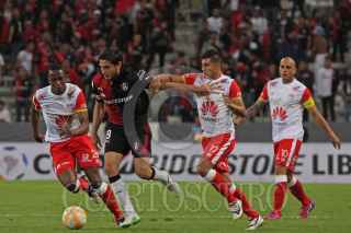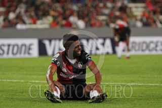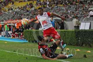 GUADALAJARA, JALISCO. 17FEBRERO2015.- En la imagen el jugador del Atlas de Guadalajara (México), Marcos Da Silva, se queja por una falta, esto en partido correspondiente a la Fecha 1 de la Copa Bridgestone Libertadores, en donde se enfrentan los equipos del Atlas de Guadalajara (México) frente al Independiente de Santa Fe (Colombia), que se celebra en el Estadio Jalisco. FOTO: FERNANDO CARRANZA GARCIA/CUARTOSCURO.COM