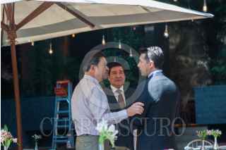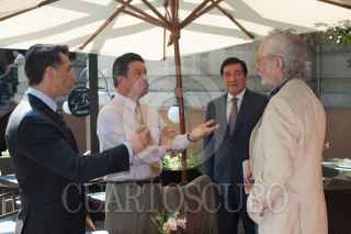 MÉXICO, D.F., 18FEBRERO2015.- Carlos Navarrete, dirigente nacional del PRD, conversa con los actores Sergio Mayer y Hugo Stiglitz quienes coincidieron en el restaurante de la Casa de Lamm. Estos últimos acudieron a la presentación de la campaña "Adopta a un Mexicano". FOTO: MOISÉS PABLO /CUARTOSCURO.COM