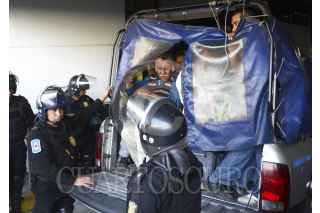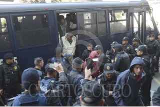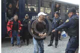 MÉXICO, D.F., 18FEBRERO2015.- Más de 160 trabajadores de una mian de arena fueron detenidos y trasladados a la agencia 50 del Ministerio Público, lluego de que se enfrentaronpor el control de la mina. En la gresca resultaron cuatro heridos y vehículos dañados de los cuales uno fue incendiado. FOTO: ARMANDO MONROY /CUARTOSCURO.COM