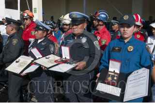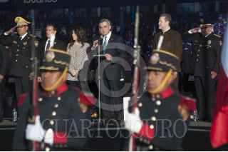 MÉXICO, D.F., 19FEBRERO2015.- Miguel Ángel Mancera, jefe de gobierno capitalino e Hiram Almeida, titular de la Secretaría de Seguridad Pública capitalina, encabezaron la ceremonia de Graduación de la Policía Auxiliar y Bancaria Industrial, además la la Entrega de Condecoraciones a policías y rescatistas por su valiente participación en el rescate de las víctimas de la explosión en el Hospital Materno Infantil de Cuajimalpa. FOTO: DIEGO SIMÓN SÁNCHEZ /CUARTOSCURO.COM