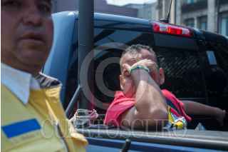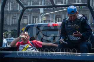 MÉXICO, D.F., 19FEBRERO2015.- Después de una reunión que sostuvieron integrantes de las porras de dos de los equipos de la liga mexicana de futbol (club américa y los Pumas de C.U.), con funcionarios del gobierno de la ciudad, en la cual hicieron un acuerdo de paz en el próximo partido, al menos unas 4 personas fueron detenidas en la plancha del Zócalo capitalino por una riña entre los aficionados. FOTO: ISABEL MATEOS /CUARTOSCURO.COM