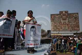 MÉXICO, D.F., 19FEBRERO2015.- La asamblea interuniversitaria recibió a los padres de los 43 normalistas desaparecidos de Ayotzinapa, para realizar un mitin a un costado de la Biblioteca Central en CU. FOTO: ADRIANA ALAVREZ/CUARTOSCURO.COM