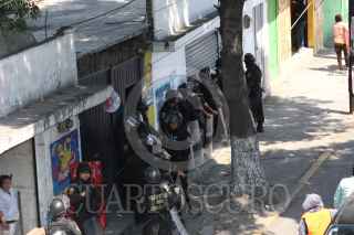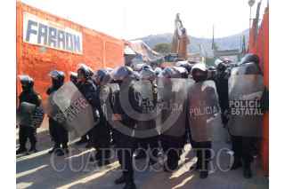 ECATEPEC, EDOMEX, 19FEBRERO2015.- Habitantes de las Colonias Santa Clara y San Andrés de la Cañada serán desalojados de algunos predios, donde el Gobierno del Estado construirá las estaciones del Mexicable, vecinos argumentan que son dueños de los terreno y que las autoridades en ningún momento negociaron la expropiación de estas tierras. En "El Mezquital" Santa clara terreno de 900 metros cuadrados ya comenzó la demolición de las estructuras donde habitaban familias y comercios. Policías Estatales Granaderos y municipales entraron al terreno asegurando que las maquinas hicieran los trabajos, se viven momentos de tensión debido a que los pobladores no quieren que ingresen las pesadas maquinas. FOTO: DIEGO REYES /CUARTOSCURO.COM