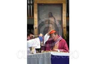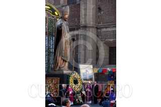 MÉXICO D.F. 02 ABRIL 2006.- El cardenal, Norberto Rivera, monto guardia honor, frente a la escultura del Papa Juan Pablo Segundo por el primer aniversario luctuoso, de su santidad, en la Basílica de Guadalupe. FOTO: Guillermo Perea / CUARTOSCURO.COM