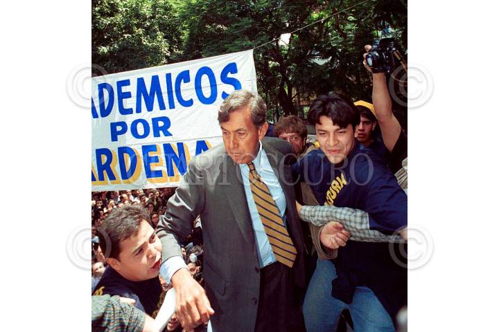 Estudiantes de la UNAM muestran el rechazo a la visita de Cuauhtémoc Cárdenas al campus universitario. FOTO: German Romero/CUARTOSCURO.COM