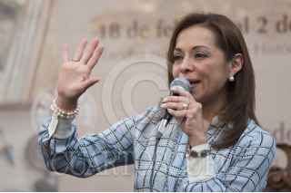 MÉXICO, D.F., 21FEBRERO2015.- Josefina Vázquez Mota, ex candidata a la presidencia en las elecciones del 2012, presentó su libro Cuando Los Hijos Mandan, en el marco de la XXXVII Feria del Libro en el Palacio de Minería. Durante la charla la acompañó la comediante Consuelo Duval. FOTO: DIEGO SIMÓN SÁNCHEZ /CUARTOSCURO.COM