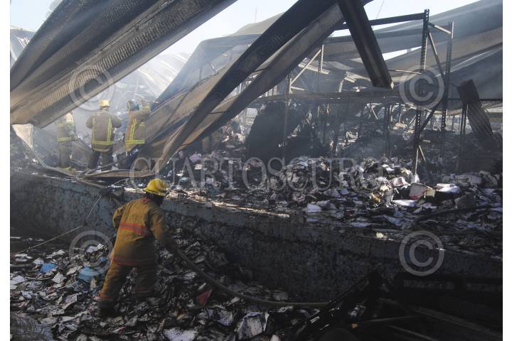 CHILPANCINGO, GUERRERO, 23FEBRERO2015.- Un incendio consumió el almacén de Salud del Gobierno del Estado. El siniestro fue reportado a las 04:00 de este lunes en el inmueble ubicado en la colonia Universal reportando pérdidas materiales así como la pérdida total del inmueble. FOTO: JOSÉ I. HERNÁNDEZ / CUARTOSCURO.COM