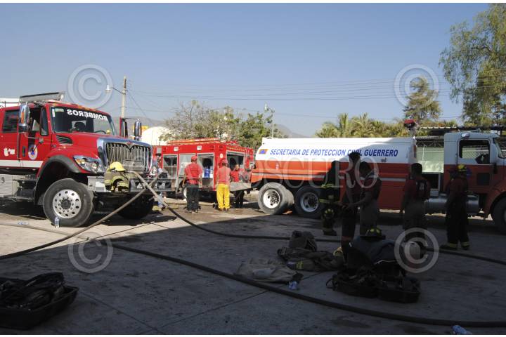 CHILPANCINGO, GUERRERO, 23FEBRERO2015.- Un incendio consumió el almacén de Salud del Gobierno del Estado. El siniestro fue reportado a las 04:00 de este lunes en el inmueble ubicado en la colonia Universal reportando pérdidas materiales así como la pérdida total del inmueble. FOTO: JOSÉ I. HERNÁNDEZ / CUARTOSCURO.COM