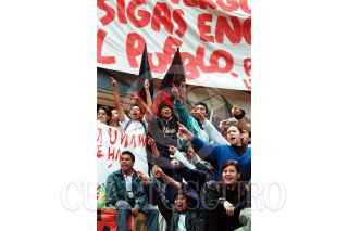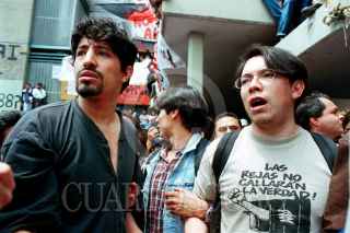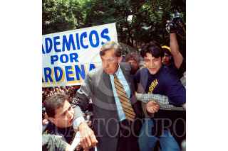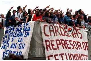 Estudiantes de la UNAM muestran el rechazo a la visita de Cuauhtémoc Cárdenas al campus universitario. FOTO: German Romero/CUARTOSCURO.COM