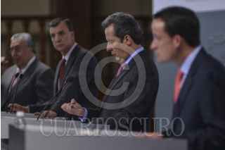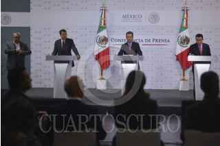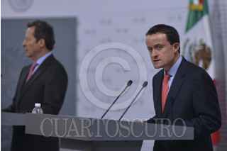 MÉXICO, D.F., 25FEBRERO2015.- Eduardo Sánchez Hernández, vocero de la la Presidencia de la República, Guillermo Haro Bélchez, Procurador Federal de Protección al Ambiente y Mikel Arriola Peñalosa, Comisionado Federal para la Protección Contra Riesgos Sanitarios, durante la conferencia para anunciar medidas en contra empresas industriales que vierten desechos en el río Atoyac en la zona del estado de Puebla. FOTO: ADOLFO VLADIMIR /CUARTOSCURO.COM