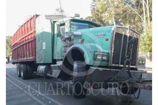 MÉXICO, D.F., 25FEBRERO2015.- Un camión tortón que transportaba tomates se volcó en avenida Eduardo Molina y la calle 308, colonia Nueva Atzacualco. FOTO: ARMANDO MONROY /CUARTOSCURO.COM