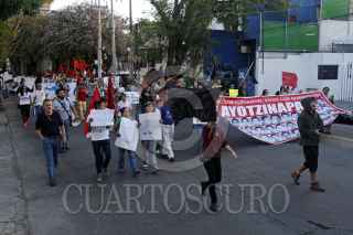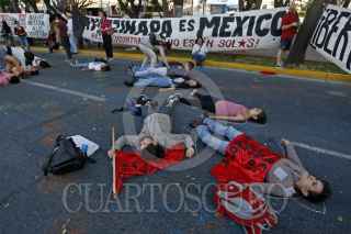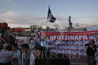 GUADALAJARA, JALISCO, 26FEBRERO2015.- Esta tarde a cinco meses de la desaparición de los Normalistas de Ayotzinapa, se llevo a cabo la Novena Jornada Global por Ayotzinapa en Jalisco, en donde decenas de personas protestaron por la causa, saliendo de los Arcos de Guadalajara, haciendo escala en el Tribunal Federal Electoral y como ultimo punto la Glorieta de la Minerva. FOTO: FERNANDO CARRANZA GARCIA / CUARTOSCURO.COM