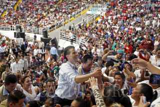 GUADALAJARA, JALISCO, 27FEBRERO2015.- El Presidente de la Republica, Enrique Peña Nieto, durante el evento donde cerro las actividades dedicadas a la Cruzada Nacional Contra el Hambre, donde ante miles de asistentes en el Auditorio Benito Juárez realizo la entrega de beneficios para personas vulnerables. FOTO: FERNANDO CARRANZA GARCIA / CUARTOSCURO.COM