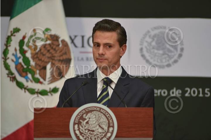 MÉXICO, D.F., 27FEBRERO2015.- Enrique Peña Nieto, presidente de México, tomó protesta a Jesús Murillo Karam, como el nuevo Secretario de Desarrollo Agrario, Territorial y Urbano, en sustitución de Jorge Carlos Ramírez Marín, quien competirá por una diputación. Durante la ceremonia, el presidente felicitó a ex procurador de la república, sobre todo, "por su gran actuación en el caso Iguala". FOTO: ADOLFO VLADIMIR /CUARTOSCURO.COM