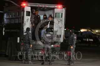 ÉXICO, 27FEBRERO2015.- Personal de la PGR, PF y del gabinete de seguridad trasladaron a Servando Martinez Gomez alias La Tuta y Flavio Martinez hermano de la Tuta al hangar de la PGR donde fue llevado a un penal federal de máxima seguridad. FOTO: SAÚL LÓPEZ /CUARTOSCURO.COM