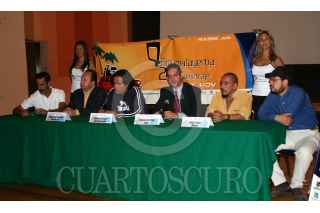 MÈXICO,D.F.ABRIL2006.- Julio Bracho actor y conductor en compañìa de Carlos del Peòn, representante de Sony HDV, durante la conferencia de prensa de Malayerba Producciones donde se informò del lanzamiento de la convocatoria del 4to Rally Malayerba 24hrs de Cortometraje y que es presentado por Sony HDV. La cuarta ediciòn se llevarà a cabo en el Puerto de Acapulco de Juàrez en el Estado de Guerrero dentro del 2º Festival Internacional de Cine de Acapulco. Foto: M. Tulia Pèrez Bocanegra/CUARTOSCURO.COM