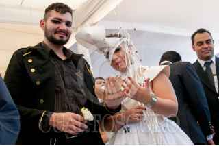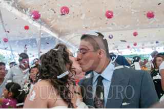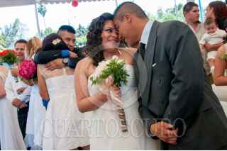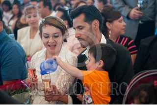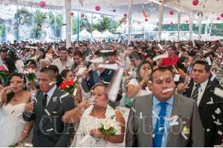 MÉXICO, D.F., 28FEBRERO2015.- Ceremonia de matrimonios colectivos en la explanada de la Delegación Venustiano Carranza donde 500 parejas se dieron el primer beso como esposos. Durante el evento los cónyuges fueron consentidos con mariachi, hubo brindis de honor y regalaron viajes de lunas de miel. FOTO: DIEGO SIMÓN SÁNCHEZ /CUARTOSCURO.COM