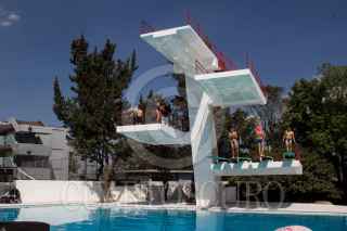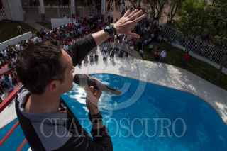 MEXICO, D.F. 28FEBRERO2015.- Luego de una inversión total de más de 15 millones de pesos, el delegado de Cuajimalpa, Adrián Ruvalcaba Suárez entregó el día de hoy las instalaciones remozadas del Deportivo Morelos, ubicado en esta demarcación. Suárez señaló que las mejoras consistieron en la remodelación de la sala de boxeo, el gimnasio, la sala de pesas, la alberca y la construcción de una poza de clavados, en la que al final del evento el delegado se lanzó de la plataforma de 10 metros ante todos los presentes. Si bien los usuarios del deportivo se mostraron contentos, repararon en que aún hay algunos detalles que afinar y concluir. La entrada al deportivo tendrá un costo de $35. En la imagen, Adrián Ruvalcaba al momento de saltar. FOTO: DAVID POLO /CUARTOSCURO.COM