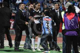 PUEBLA, PUEBLA, 28FEBRERO2015.- Aficionados invadieron el terreno de juego para intentar llegar al jugador Ronaldinho, durante el partido entre el Puebla de la Franja contra los Gallos Blancos de Querétaro, en juego correspondiente a la jornada 8 del torneo de clausura 2015, disputado en el estadio Universitario de la BUAP. FOTO: HILDA RÍOS /CUARTOSCURO.COM
