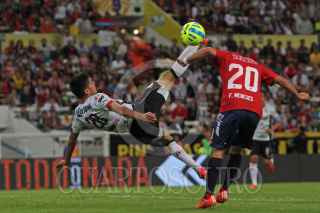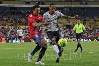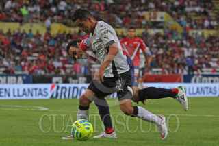 GUADALAJARA, JALISCO. 28FEBRERO2015.- El jugador del Atlas Edgar Castillo, disputa un balón frente al contrario del Veracruz Jesús Paganoni, esto en partido correspondiente a la Jornada 8 del Torneo Clausura 2015 de la Liga MX, en donde se enfrentan los equipos del Atlas frente al Veracruz. FOTO: FERNANDO CARRANZA GARCIA/CUARTOSCURO.COM