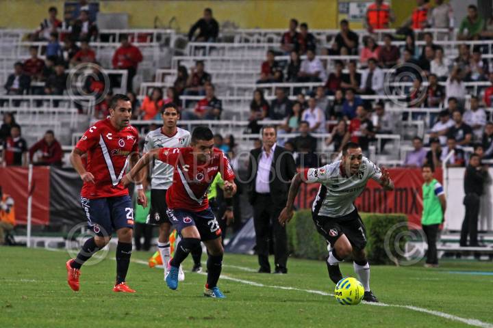 GUADALAJARA, JALISCO. 28FEBRERO2015.- El jugador del Atlas Edgar Castillo, disputa un balón frente al contrario del Veracruz Jesús Paganoni, esto en partido correspondiente a la Jornada 8 del Torneo Clausura 2015 de la Liga MX, en donde se enfrentan los equipos del Atlas frente al Veracruz. FOTO: FERNANDO CARRANZA GARCIA/CUARTOSCURO.COM